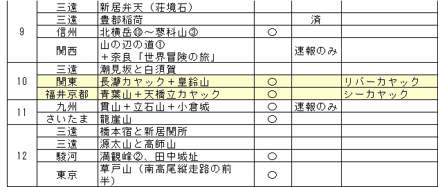 北は青森県から西は福岡県まで旅した。ヤマを歩いたのは23回ほど。メインは信州であり、百名山も3座(上州武尊山、伯耆大山、岩木山)追加することができた。カヤックは秋になって2回ほど漕いでいる。